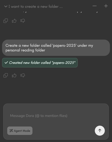Agent-Mode is turned on, Dora is able to perform file operations on your behalf.